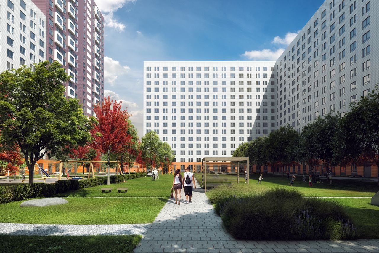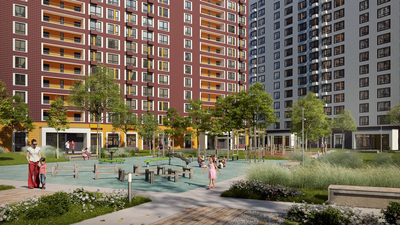 В закрытых для машин дворах разместятся детские игровые и спортивные площадки. Недалеко есть спортивная и школа искусств.
