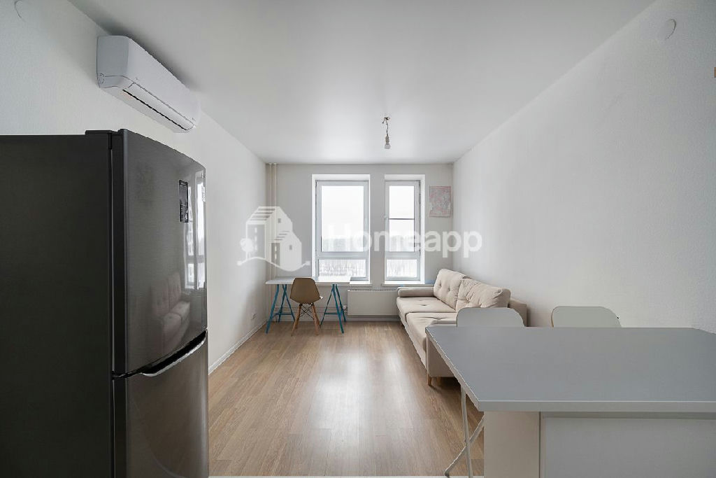 - Просторная и функциональная планировка с большой гостиной, кухонной зоной и спальней.